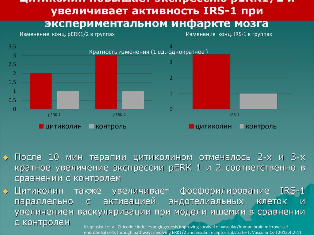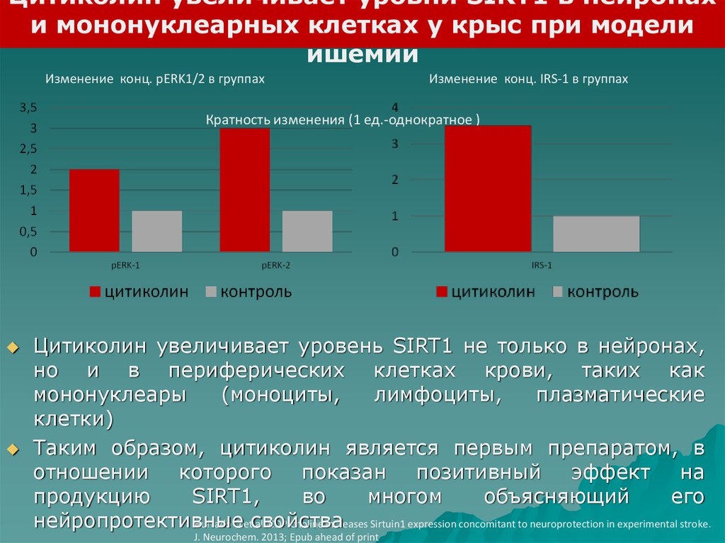 Цитиколин повышает экспрессию pERK1/2 иувеличивает активность IRS-1 при