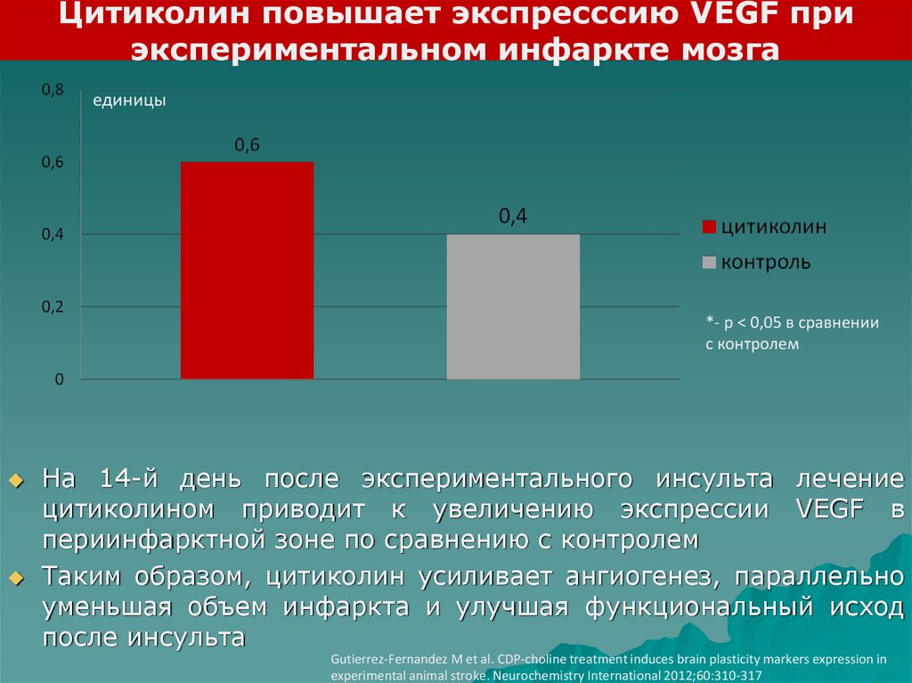 Цитиколин повышает экспресссию VEGF приэкспериментальном инфаркте мозга