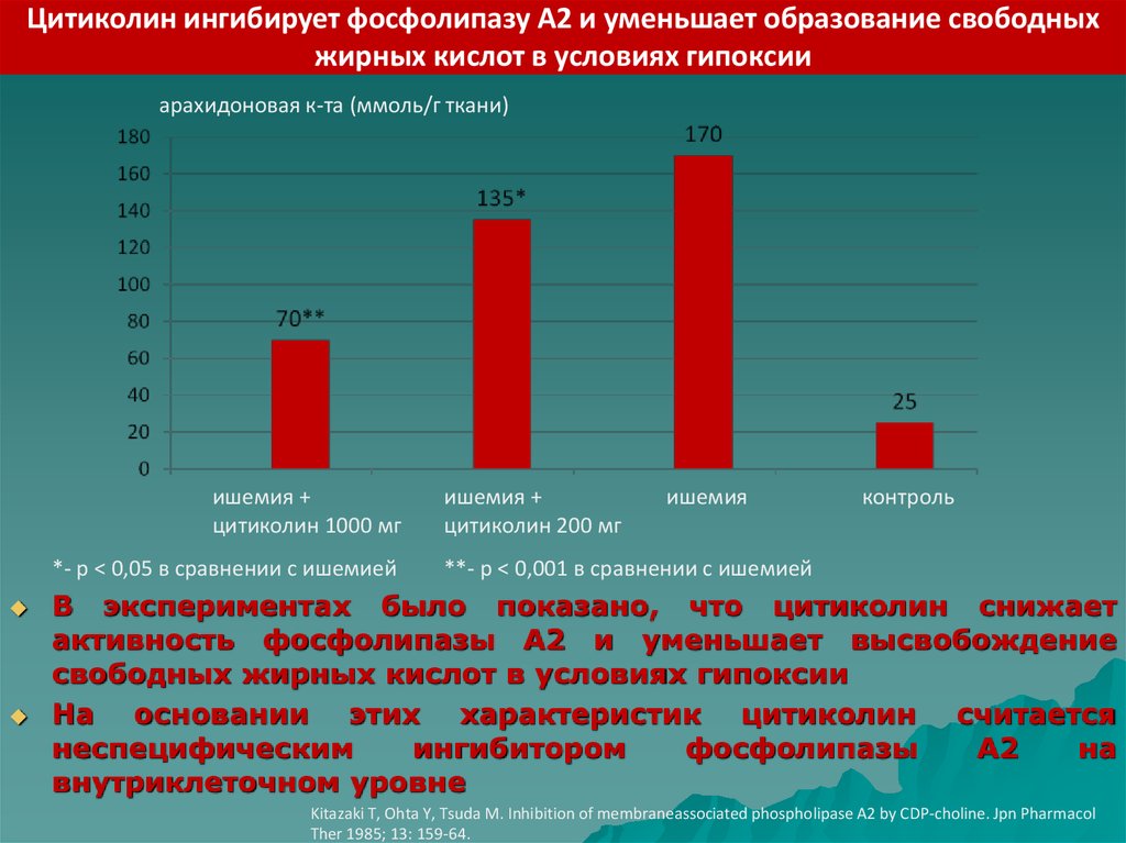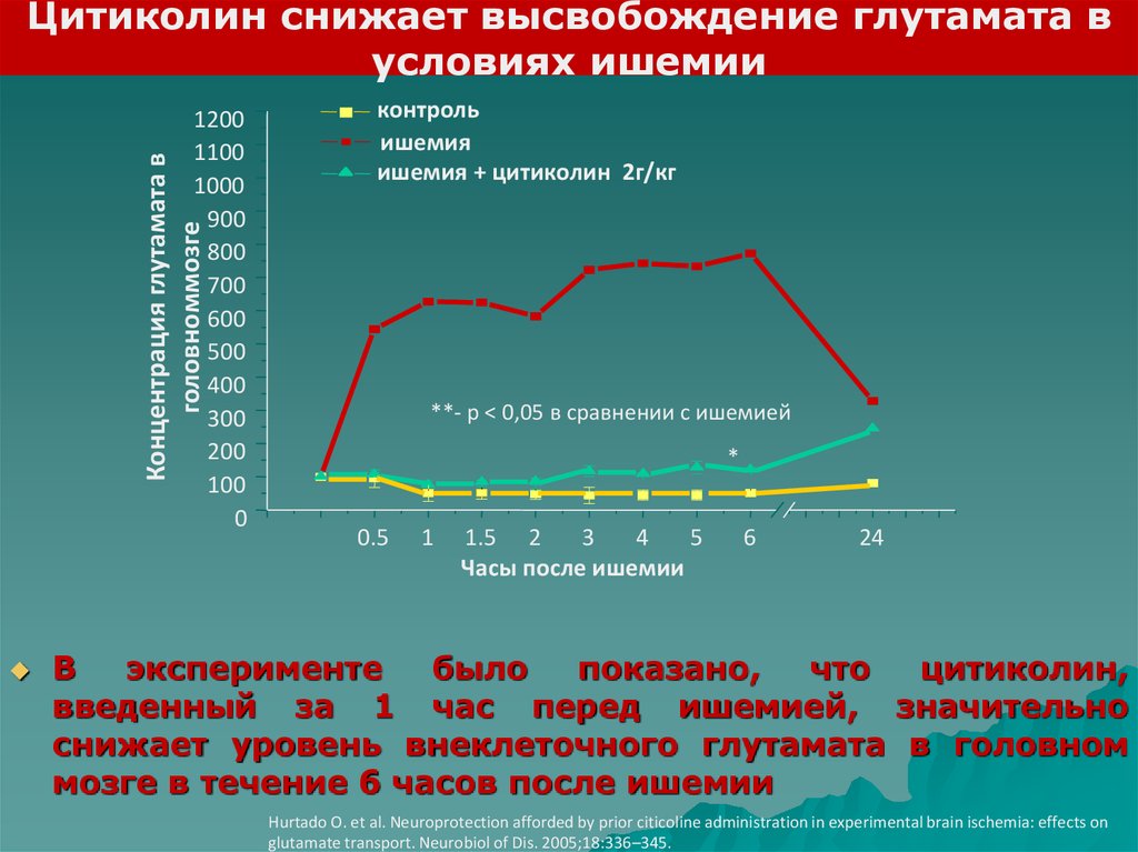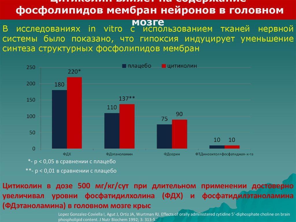 Цитиколин в дозе 500 мг/кг/сут при длительном применении достоверно