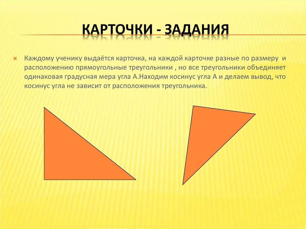 КАРТОЧКИ - ЗАДАНИЯКаждому ученику выдаётся карточка, на каждой карточке разные по размеру и