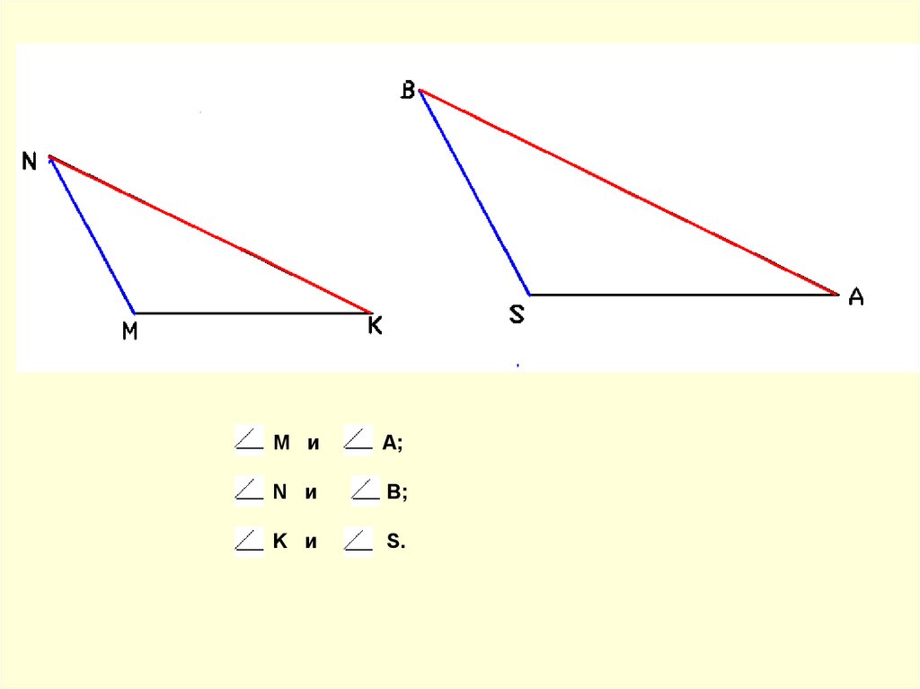В подобных треугольниках MNK И ABS стороны MN и BS,NK и AB являются сходственными.