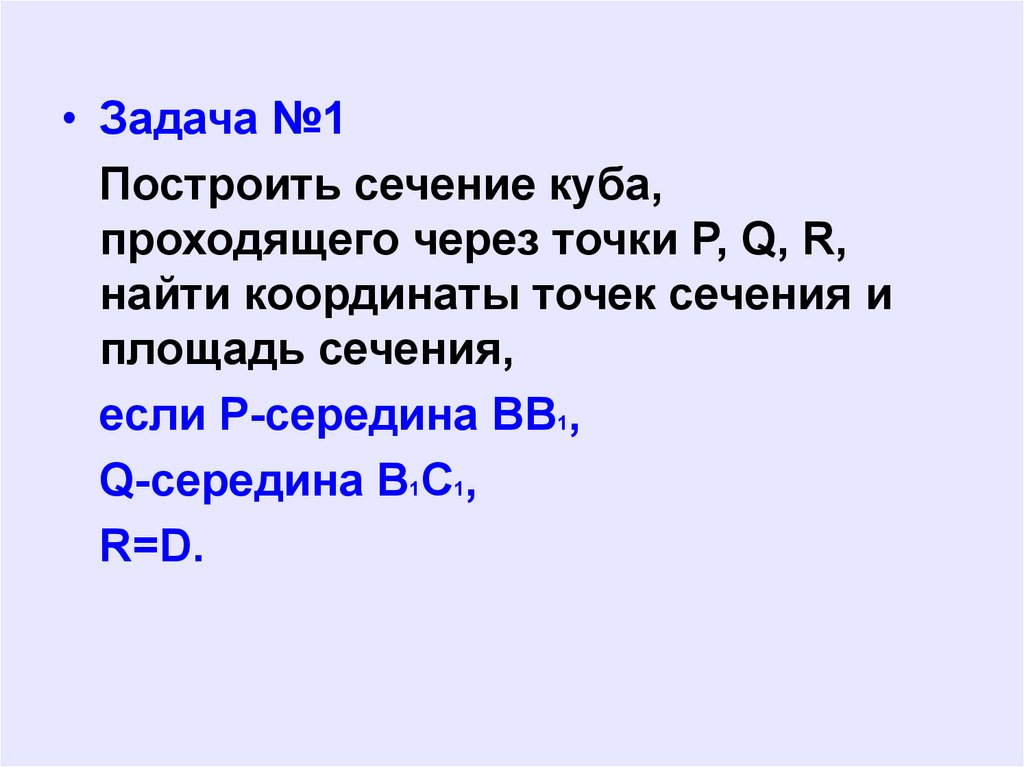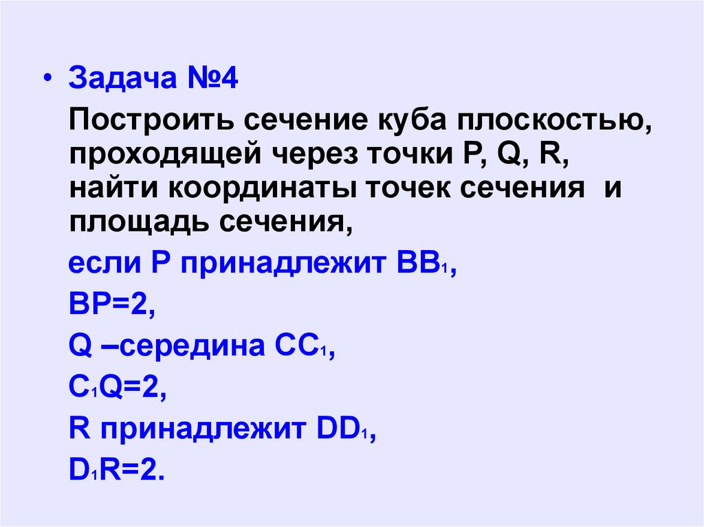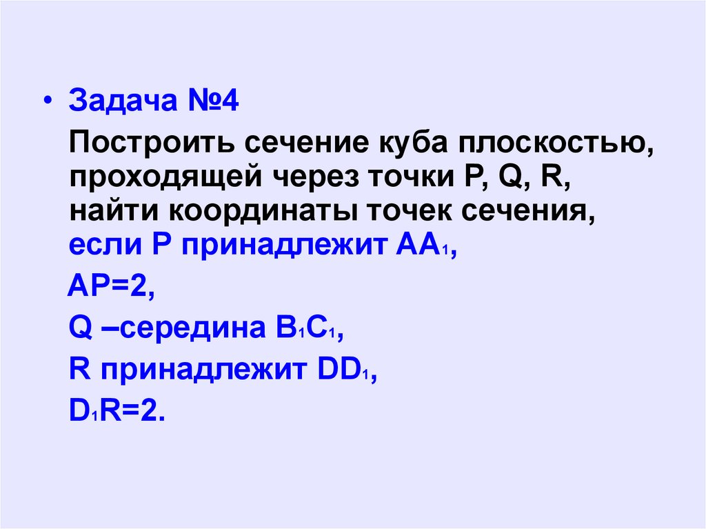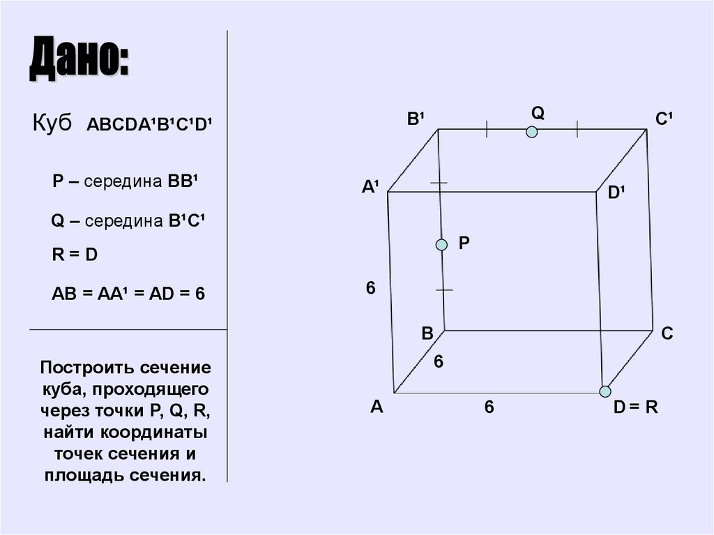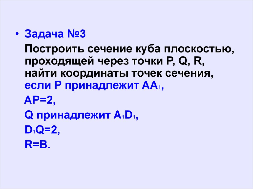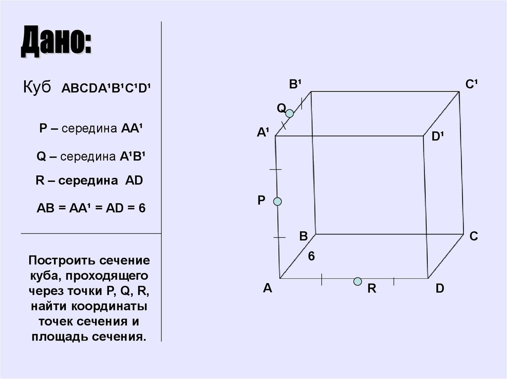 3. P принадлежит DD1,D1P=1,Q- середина AD,R-середина AB.