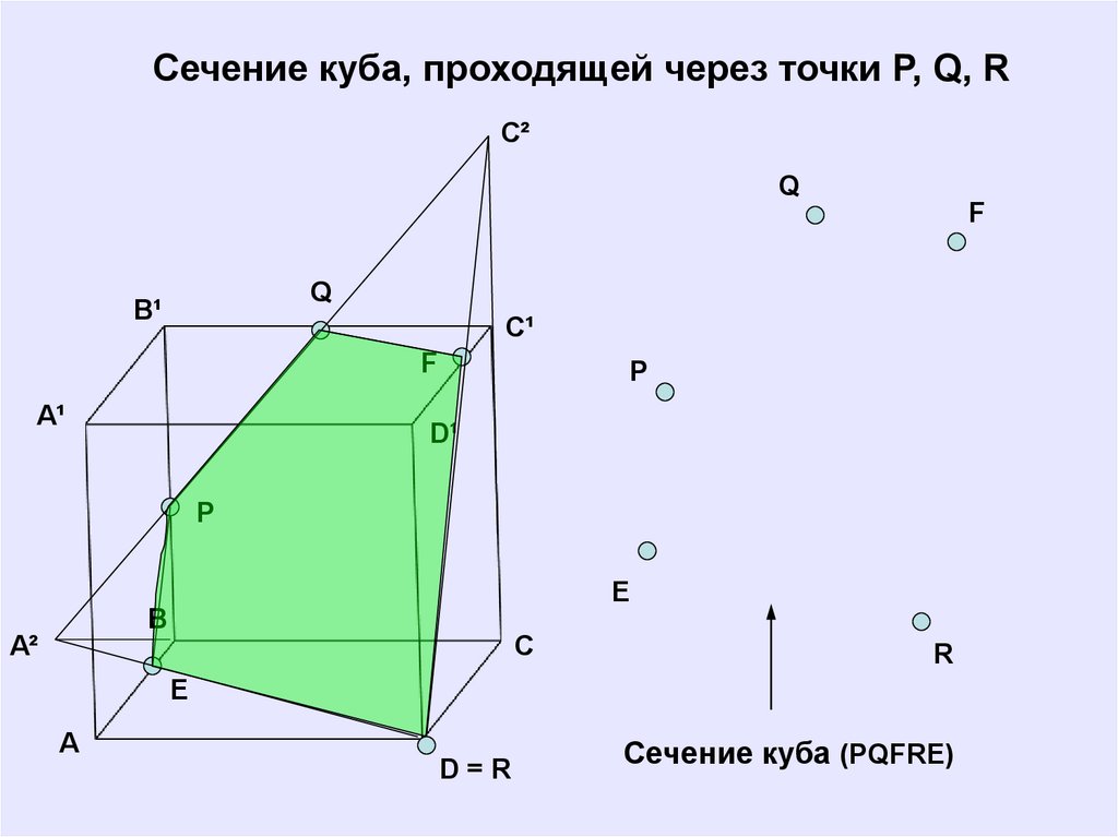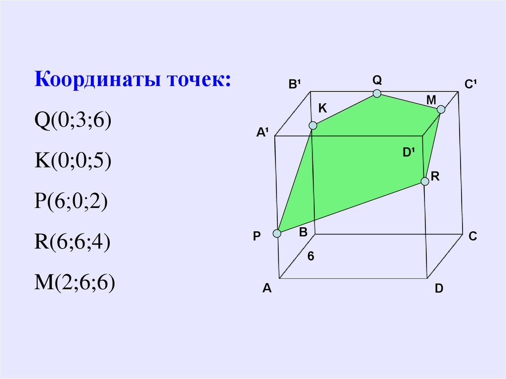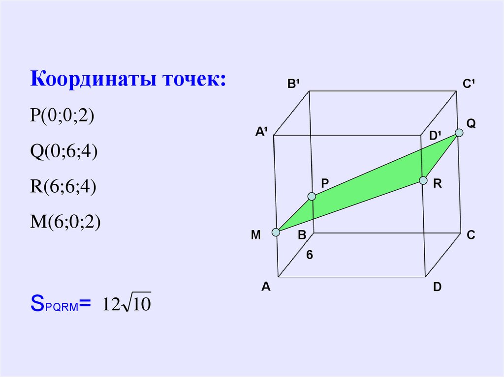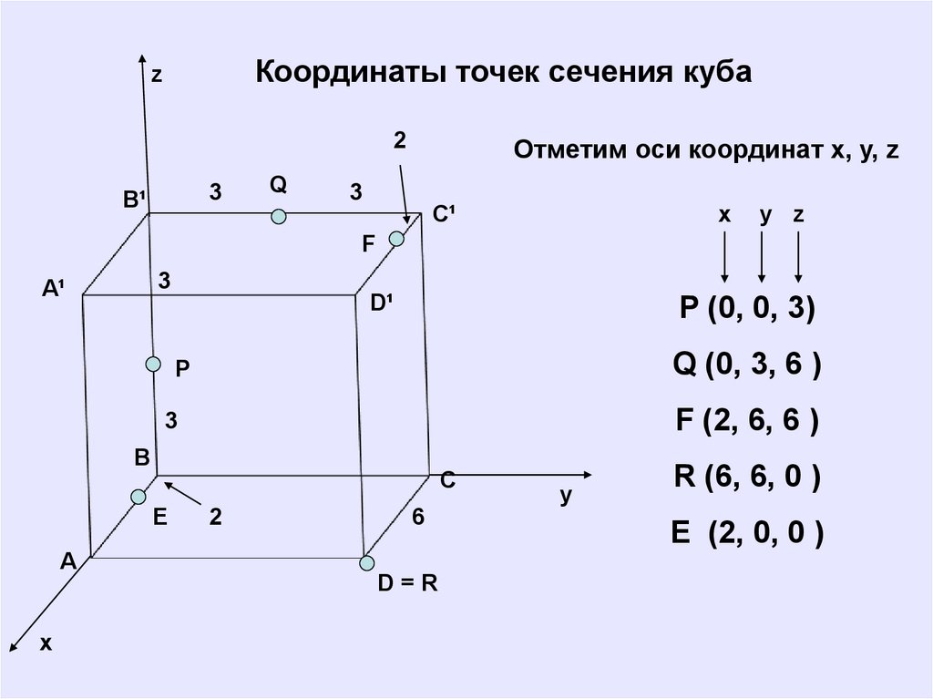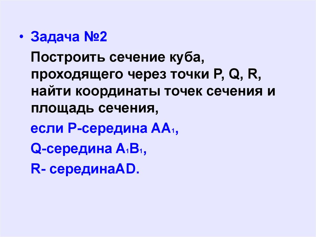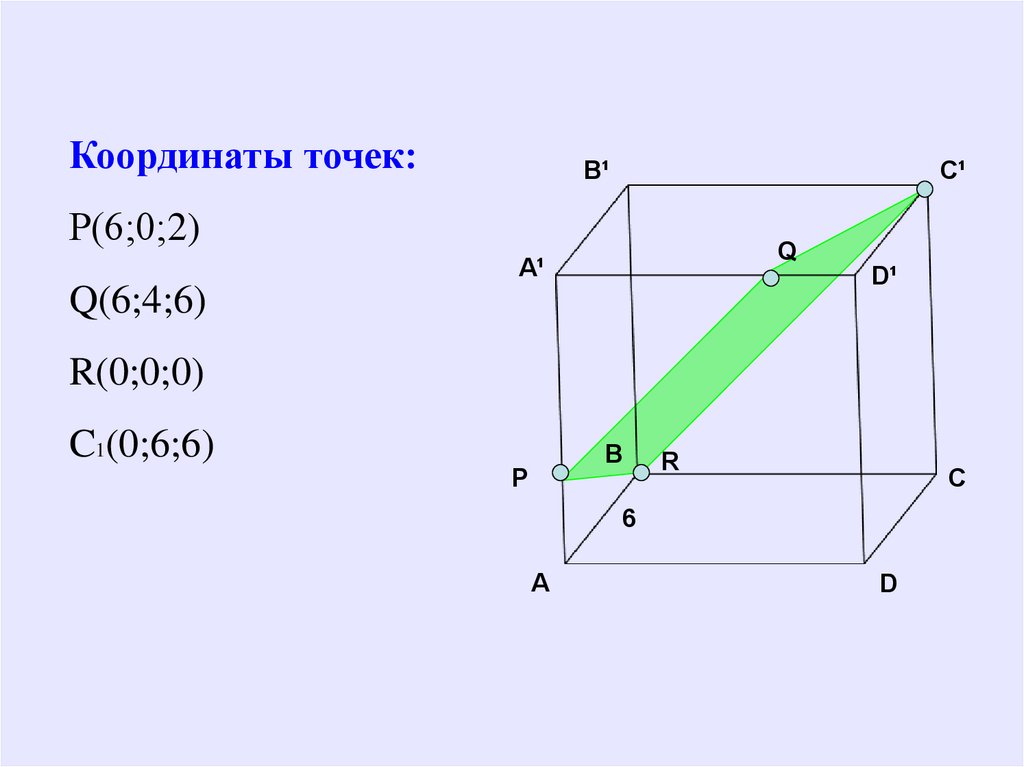 3. P принадлежит DD1,D1P=1,Q- середина AD,R-середина AB.