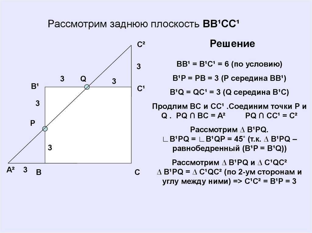 B¹Q = QC¹ = 3 (Q середина B¹C)