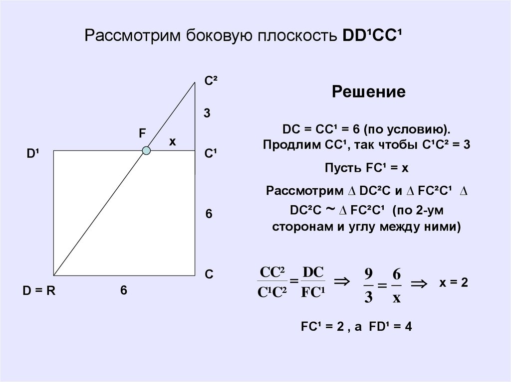 Рассмотрим боковую плоскость DD¹CC¹C²