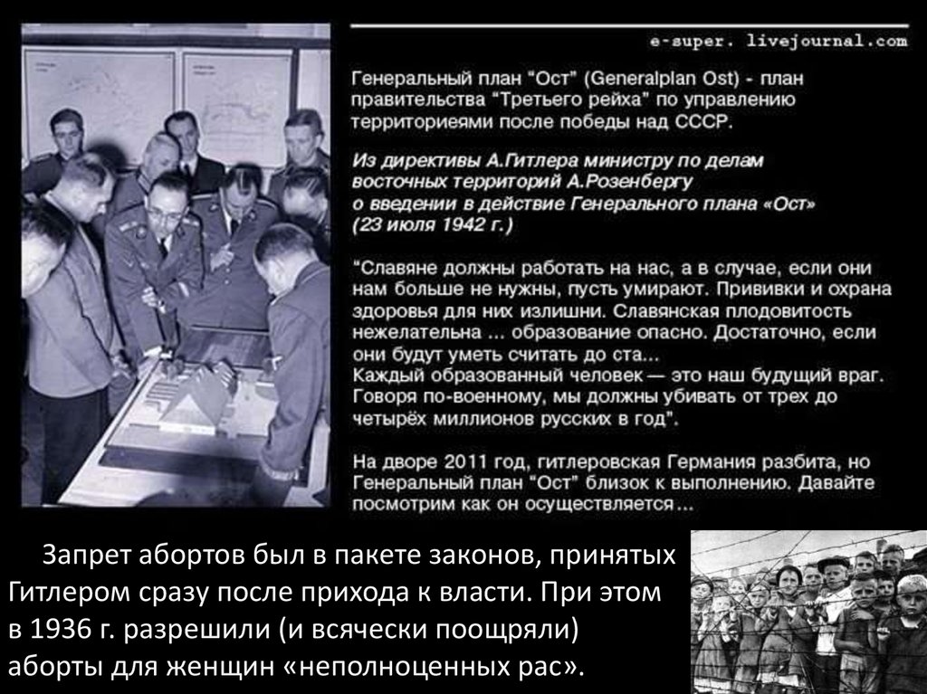 Запрет абортов был в пакете законов, принятыхГитлером сразу после прихода к власти. При этом