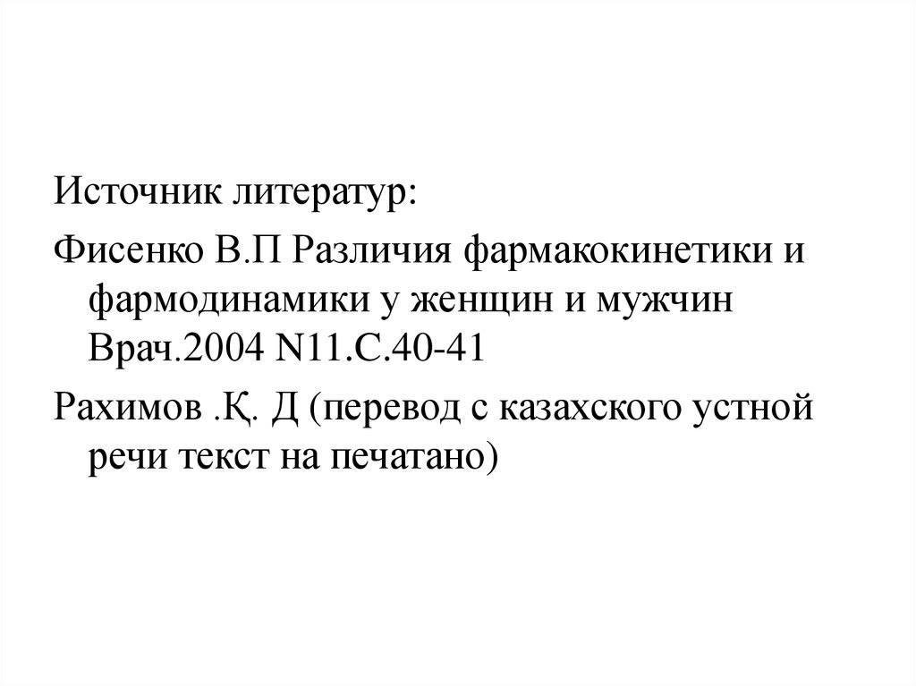 Источник литератур:Фисенко В.П Различия фармакокинетики и