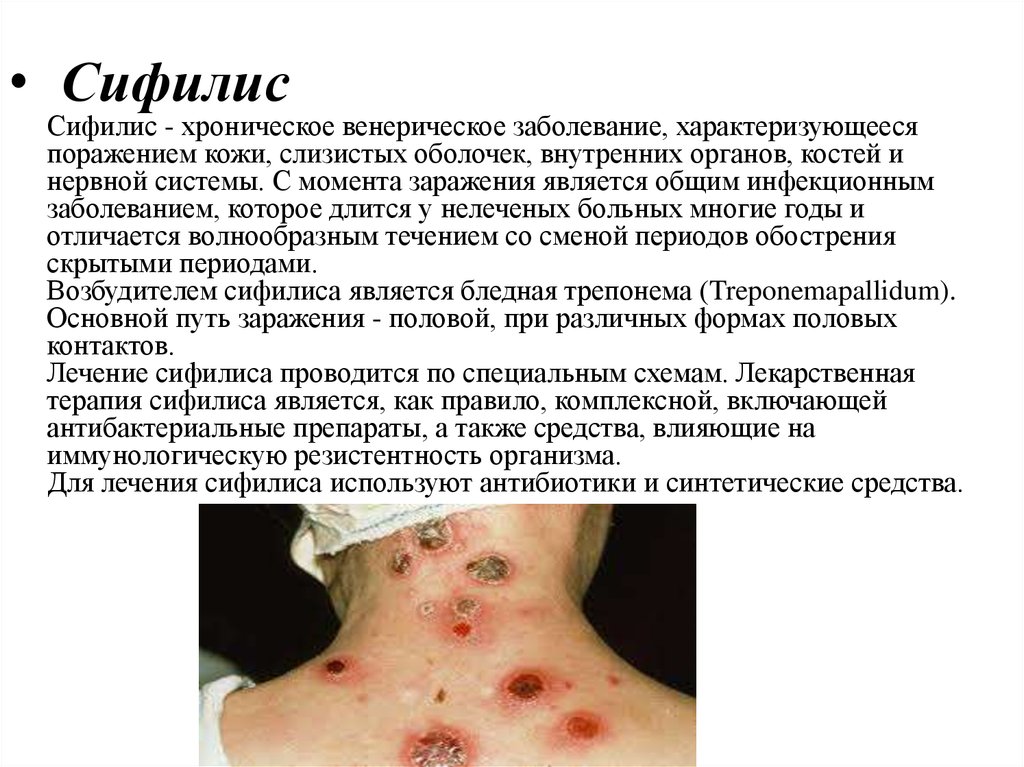 • СифилисСифилис - хроническое венерическое заболевание, характеризующееся