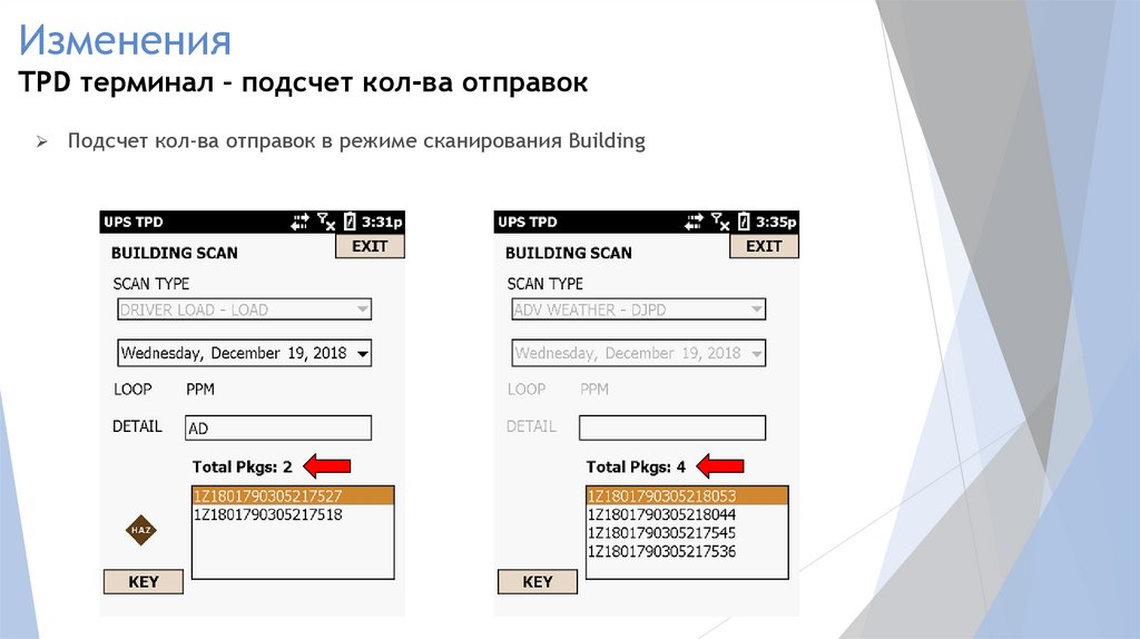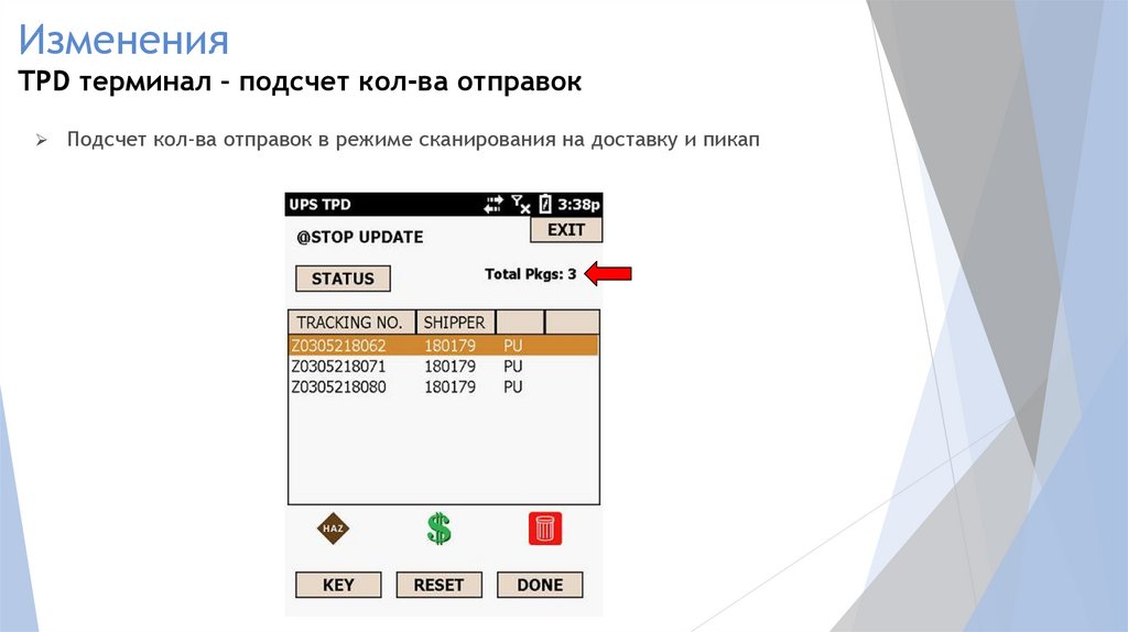 ИзмененияTPD терминал – подсчет кол-ва отправок