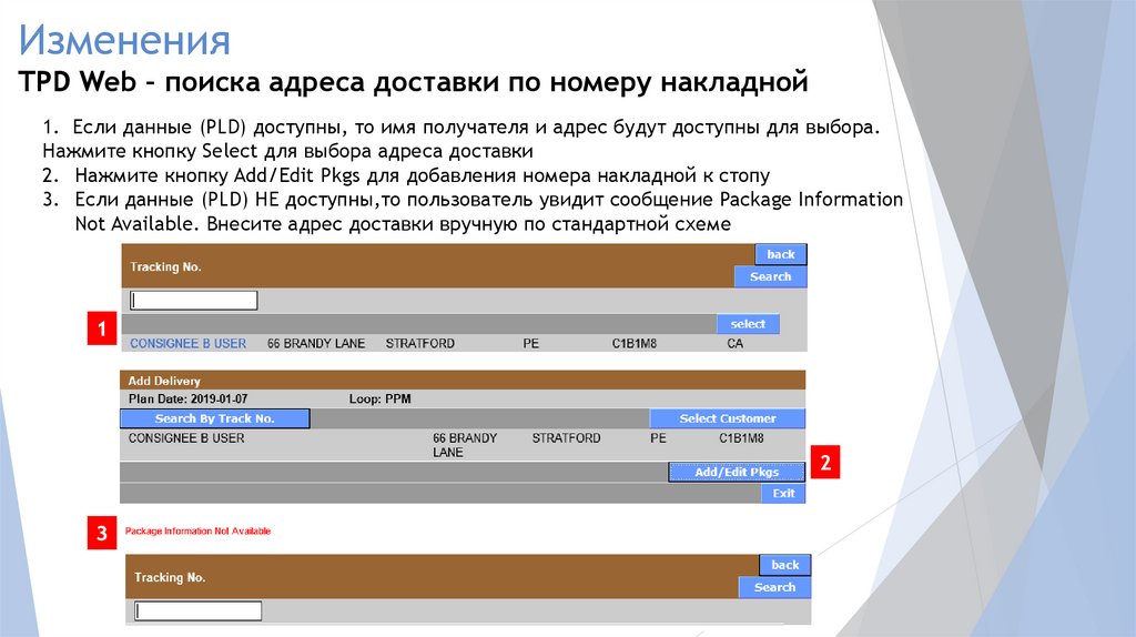 ИзмененияTPD Web – поиска адреса доставки по номеру накладной