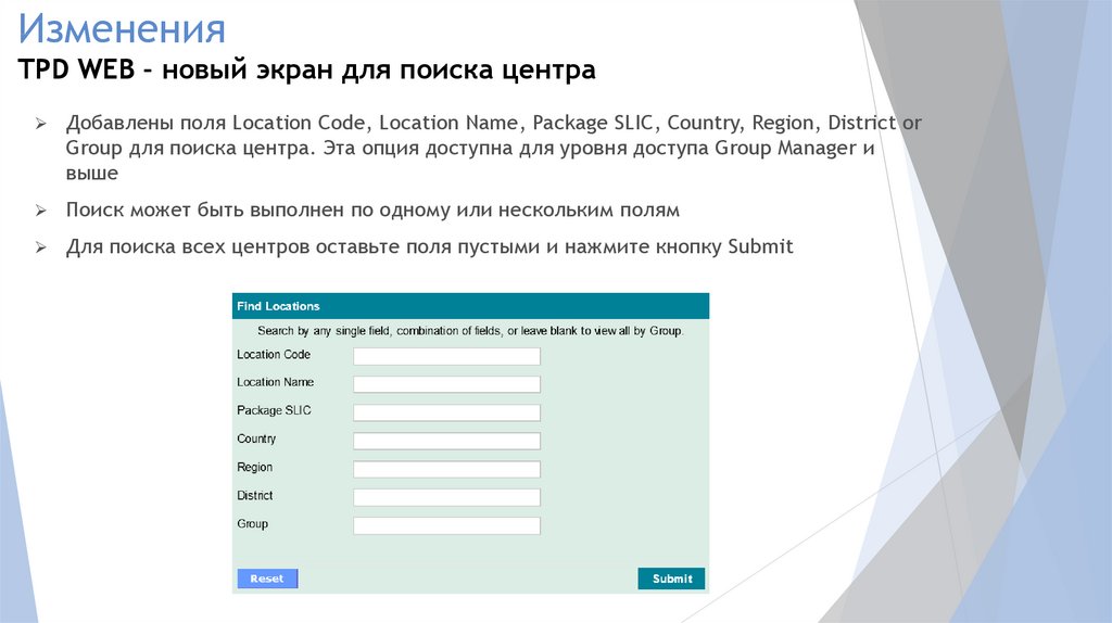 Для поиска всех центров оставьте поля пустыми и нажмите кнопку Submit