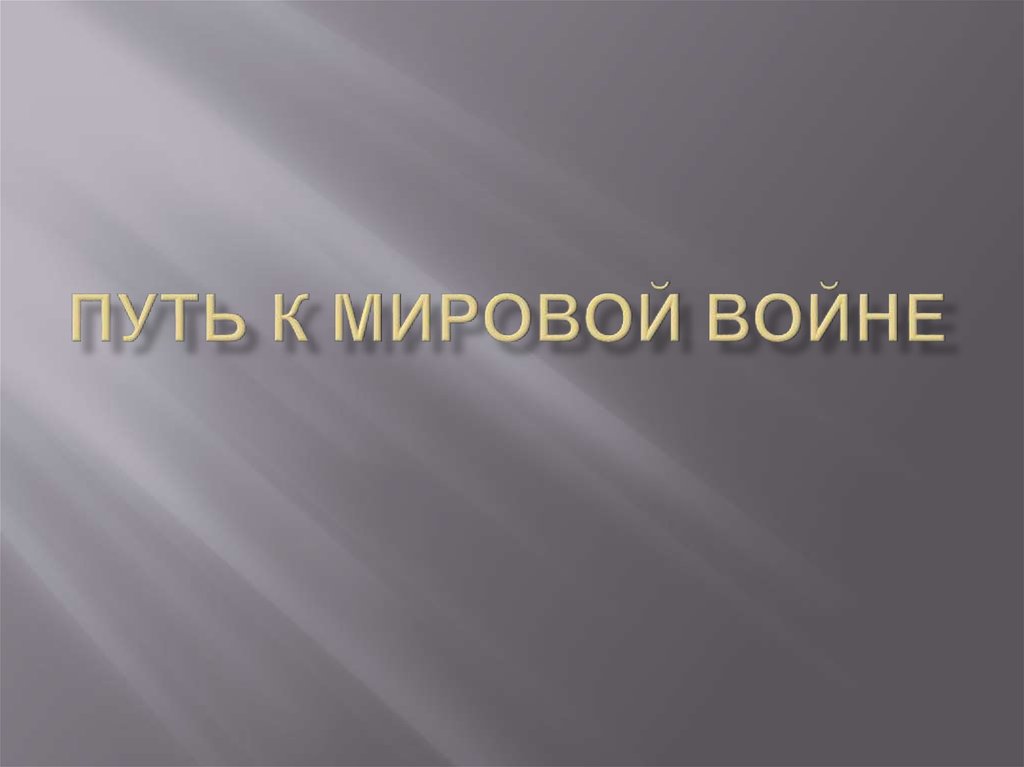 1. Путь к мировой войне