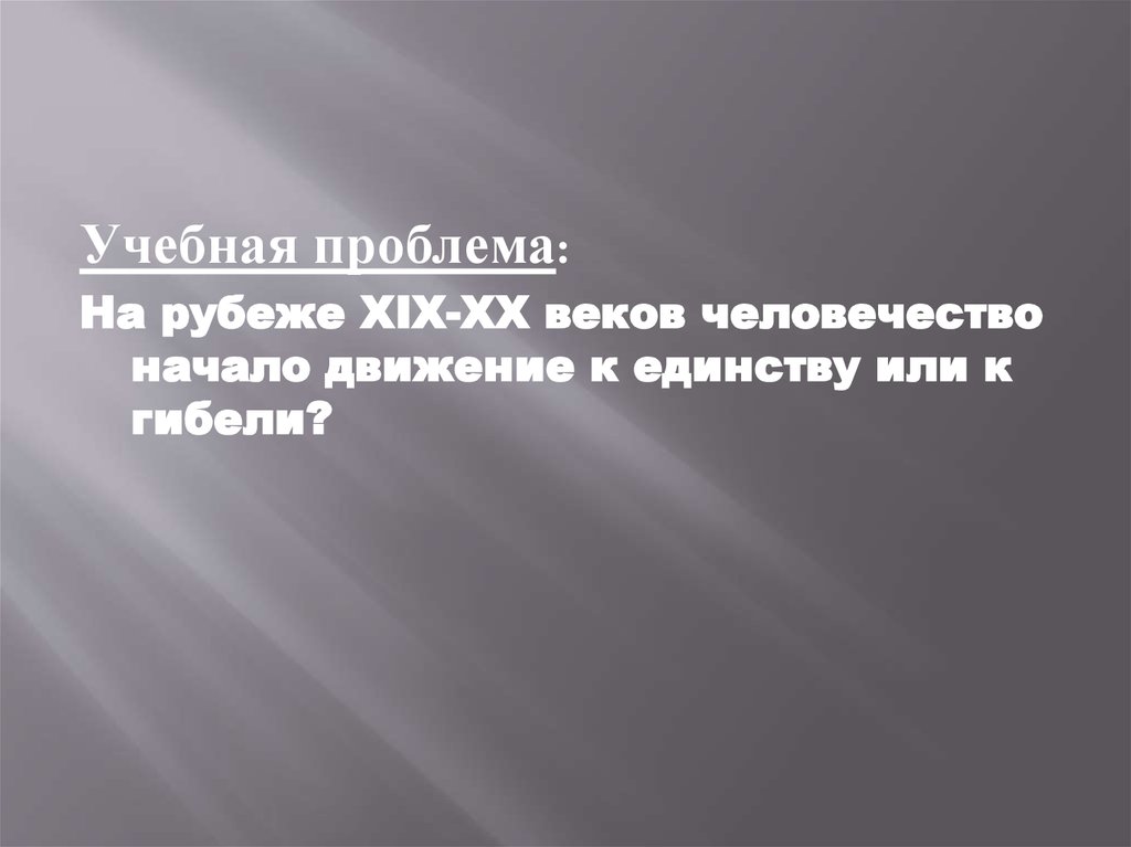 Учебная проблема:На рубеже XIX-XX веков человечество