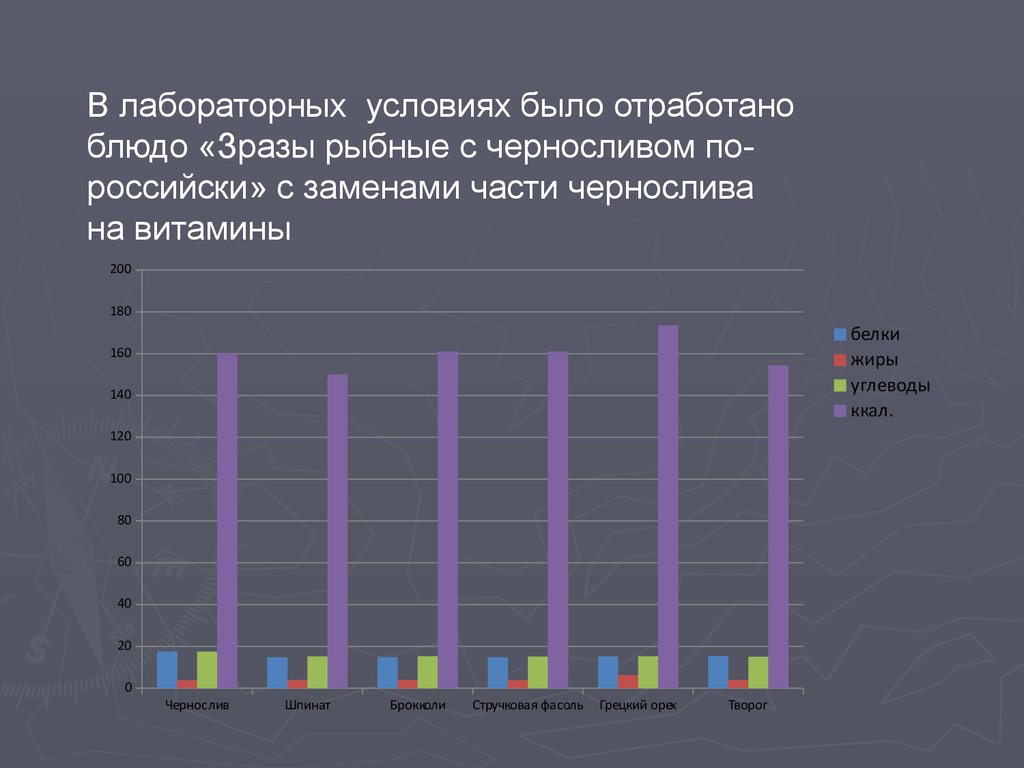 В лабораторных условиях было отработаноблюдо «Зразы рыбные с черносливом пороссийски» с заменами части чернослива
