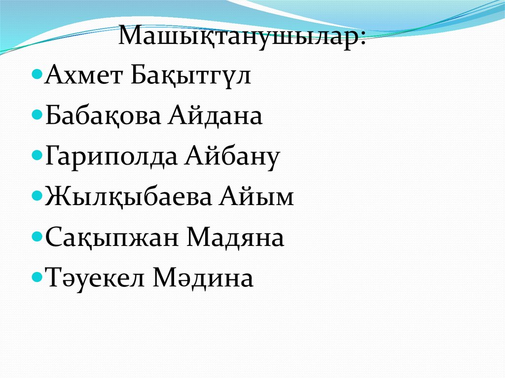 Машықтанушылар:Ахмет Бақытгүл