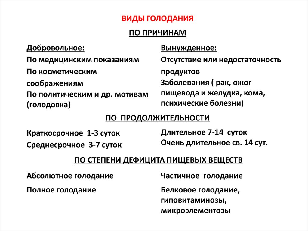 ВИДЫ ГОЛОДАНИЯПО ПРИЧИНАМ
