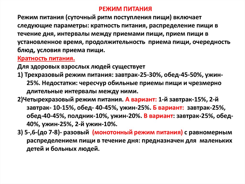 РЕЖИМ ПИТАНИЯРежим питания (суточный ритм поступления пищи) включает