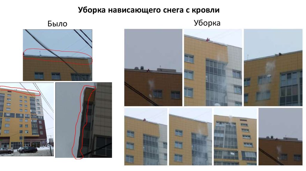 БылоУборка нависающего снега с кровли
