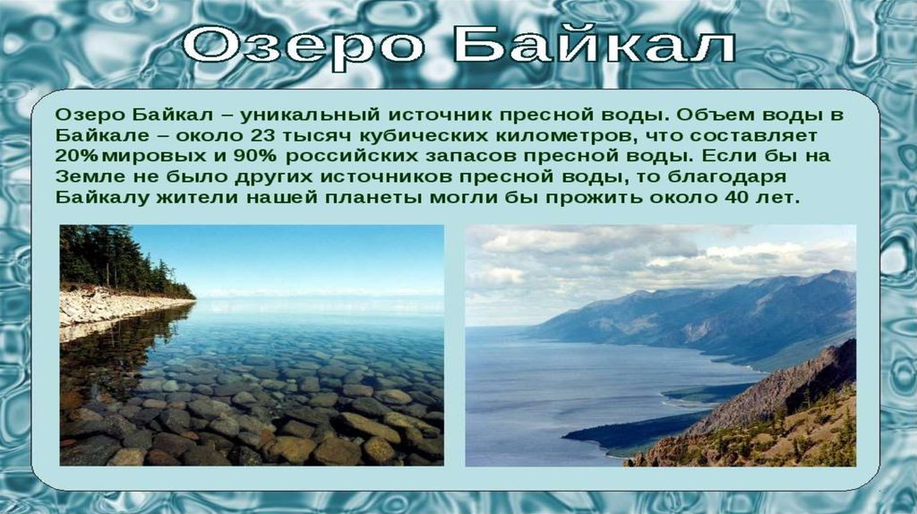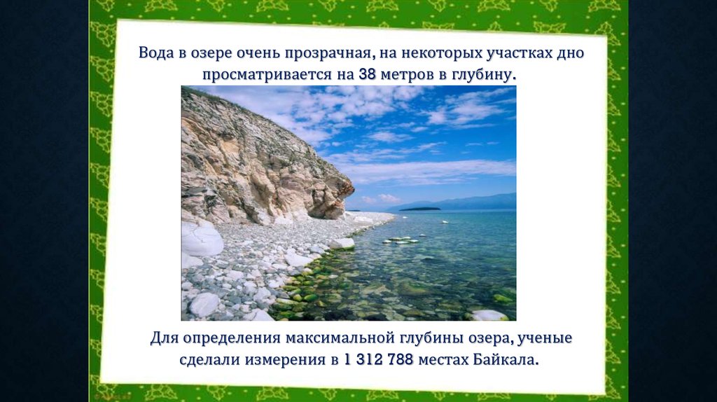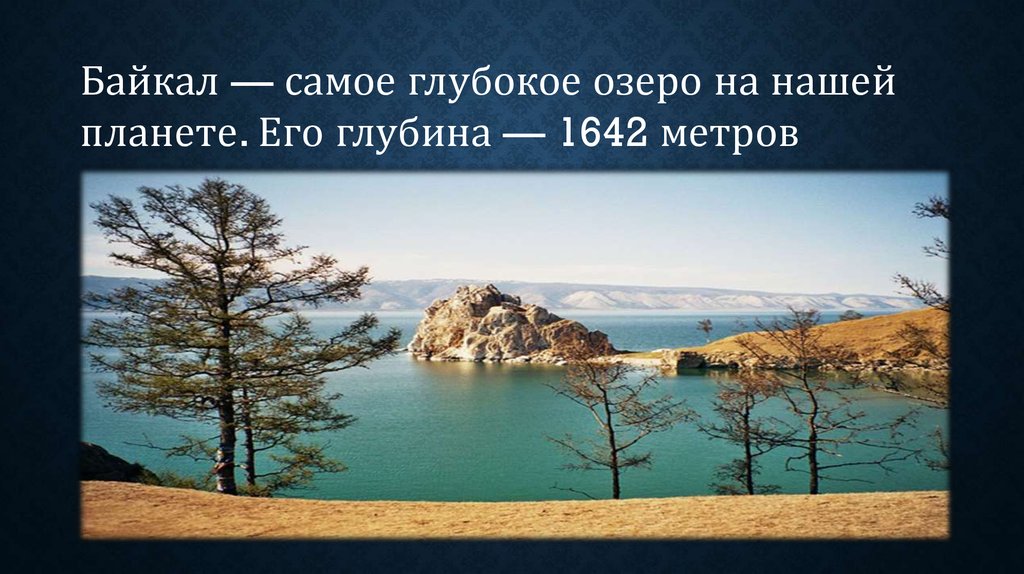 Байкал — самое глубокое озеро на нашейпланете. Его глубина — 1642 метров