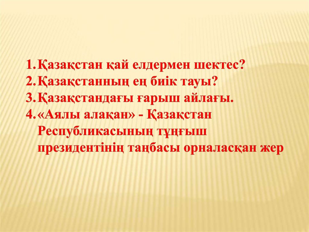 жолын баяндап, бейбіт еліміз жайлы мағлұмат беру.