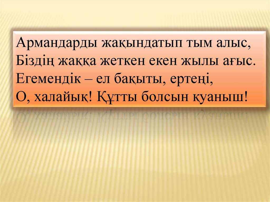 Армандарды жақындатып тым алыс,Біздің жаққа жеткен екен жылы ағыс.