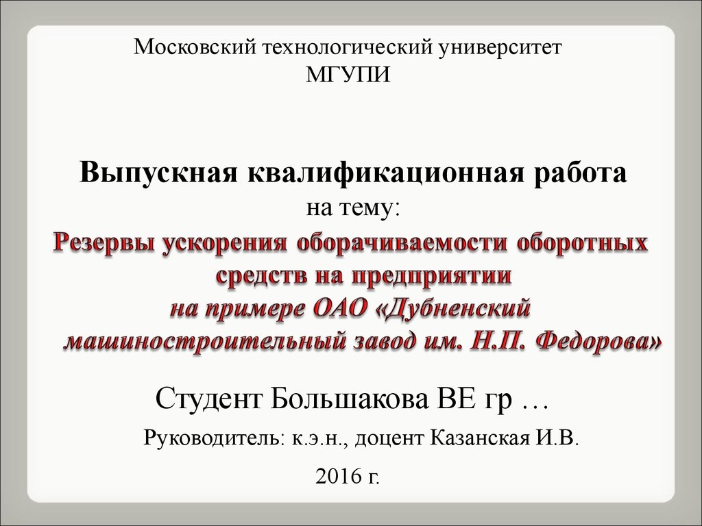 2. Цель работы - поиск резервов ускорения оборачиваемости оборотных средств на предприятии (на примере ОАО «ДМЗ»). Задачи: - Рассмотреть оборо