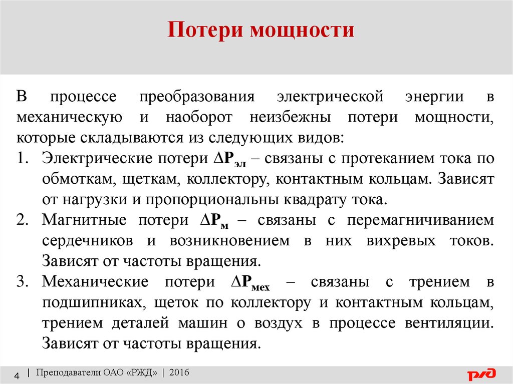 Потери мощностиВ процессе преобразования электрической энергии в