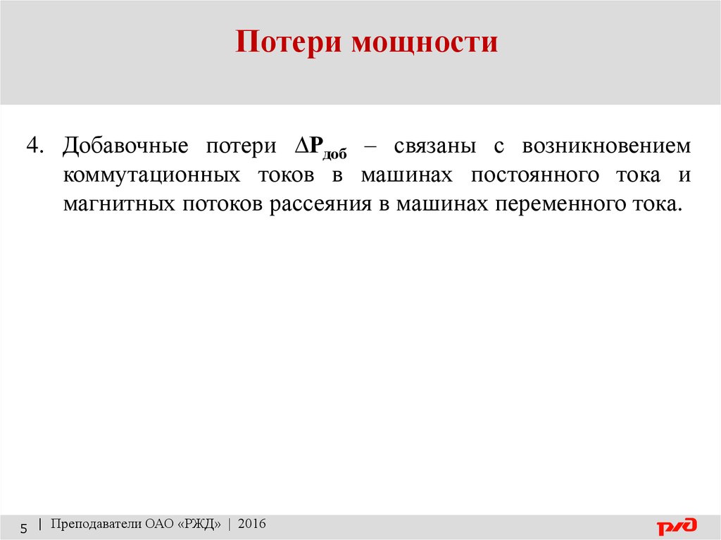 Потери мощности4. Добавочные потери ∆Рдоб – связаны с возникновением