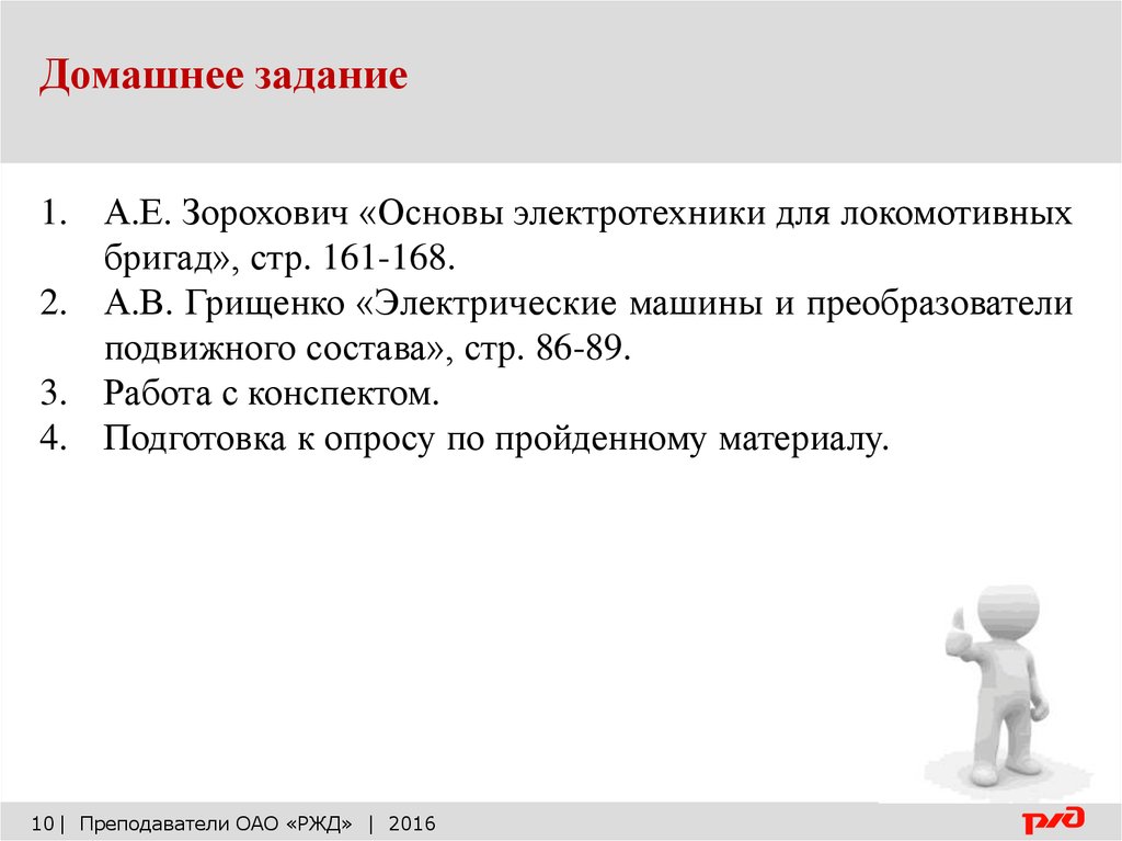 Домашнее задание1. А.Е. Зорохович «Основы электротехники для локомотивных