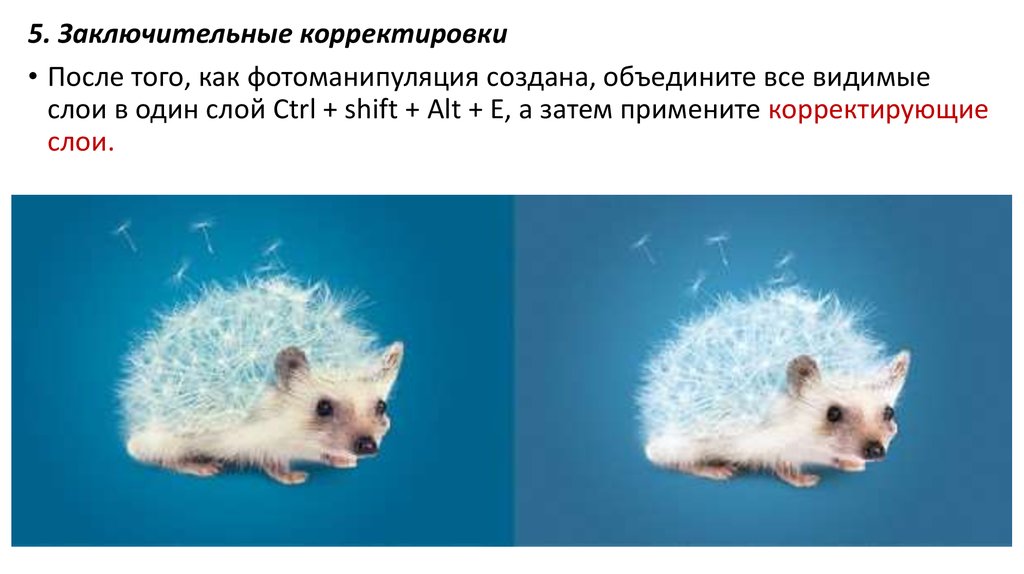 5. Заключительные корректировки• После того, как фотоманипуляция создана, объедините все видимые