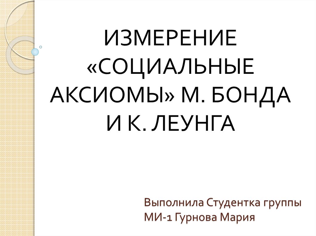 Измерение. «Социальные аксиомы» М. Бонда и К. Леунга