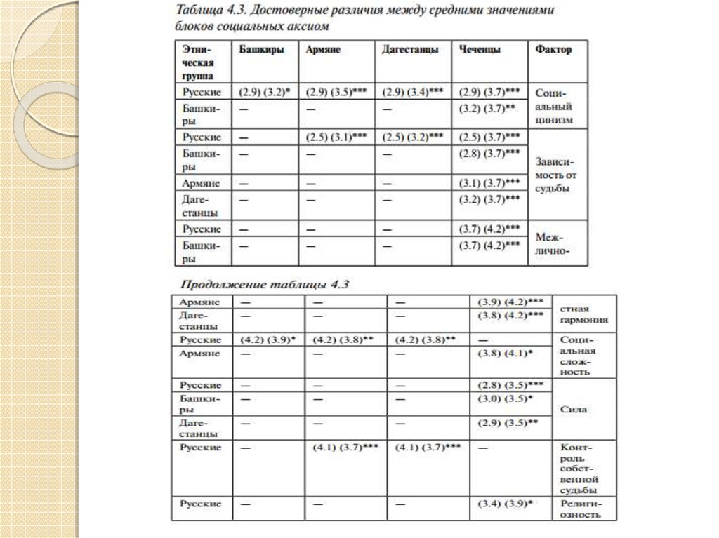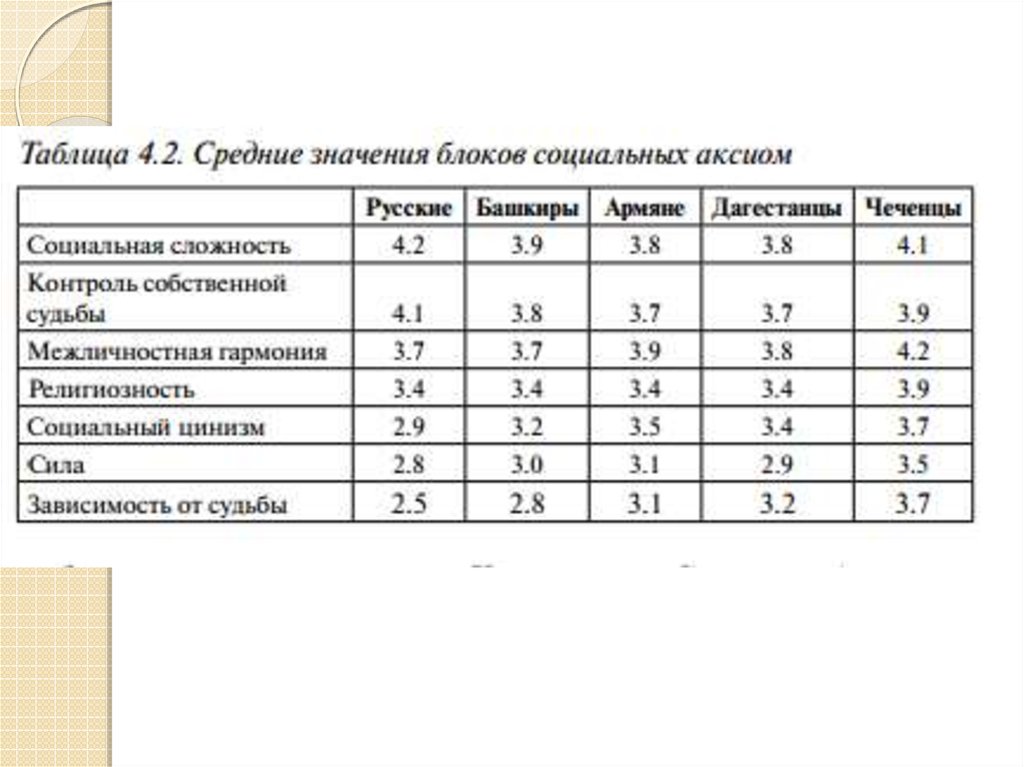 «Социальные аксиомы» «генерализованные верования о себе,социальной и физической среде, духовном