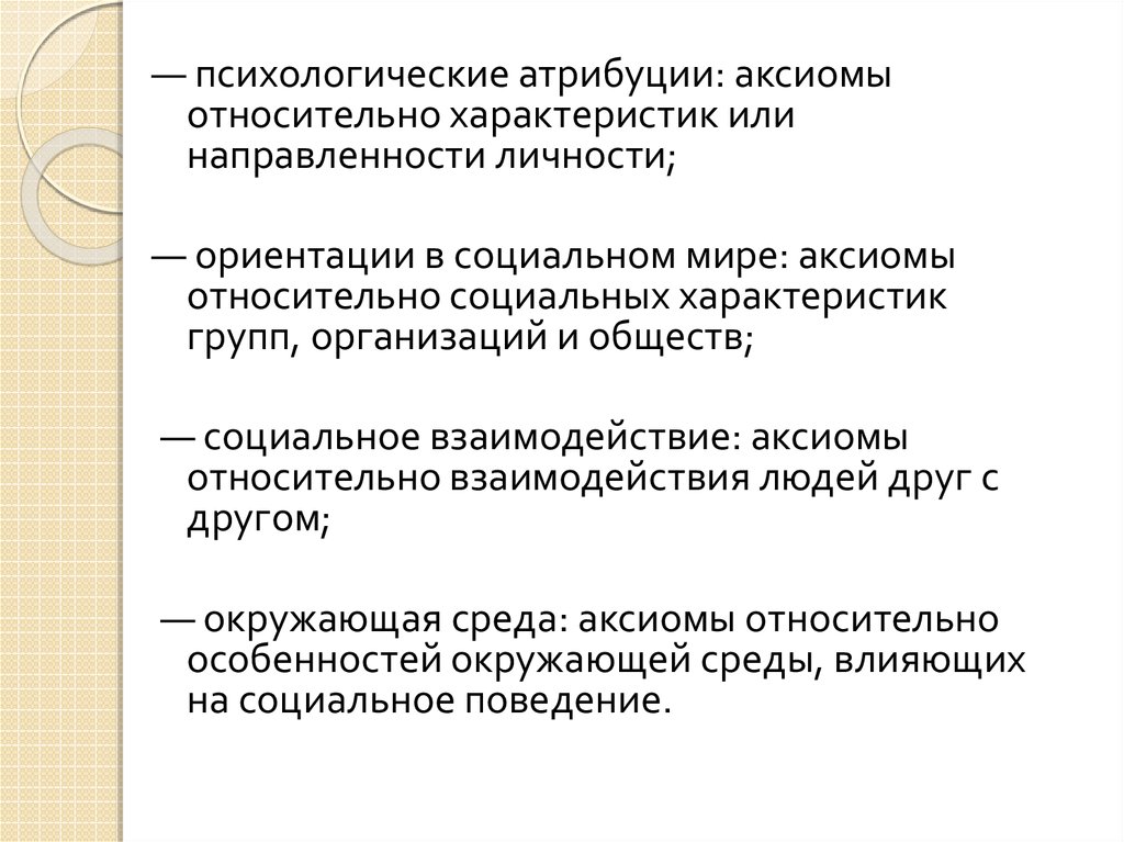 — психологические атрибуции: аксиомыотносительно характеристик или