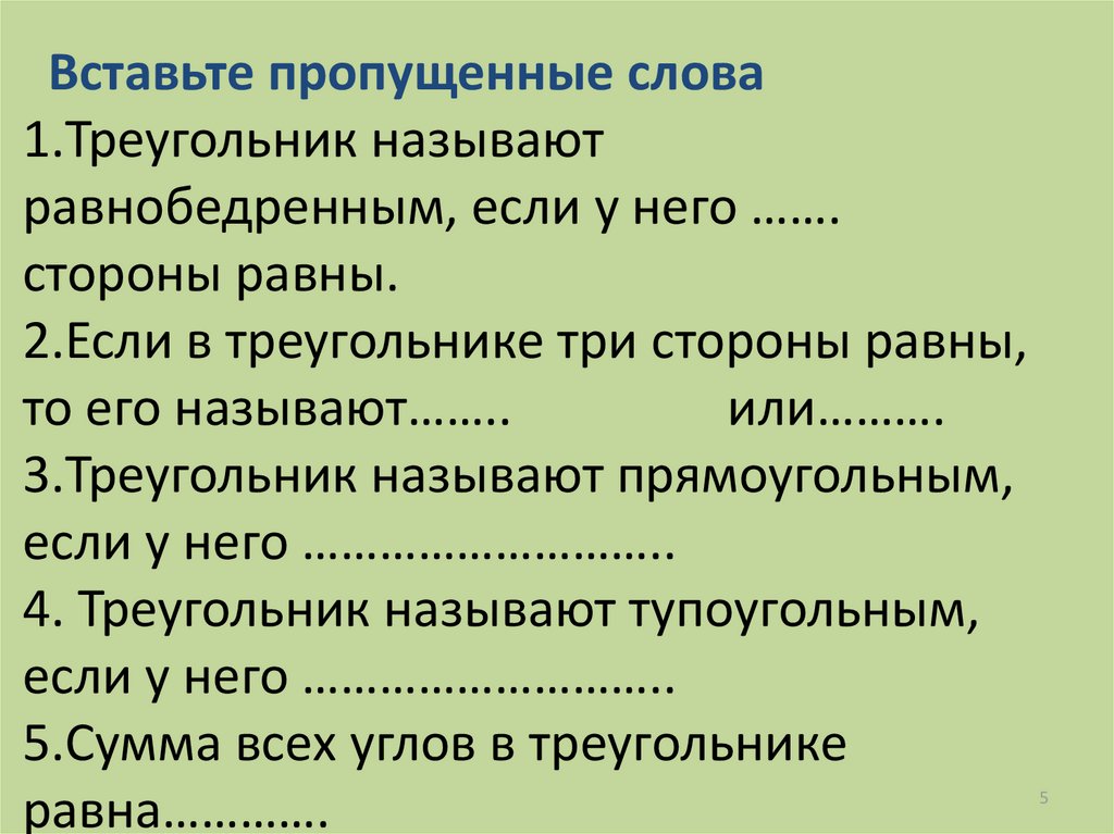 5.Сумма всех углов в треугольнике