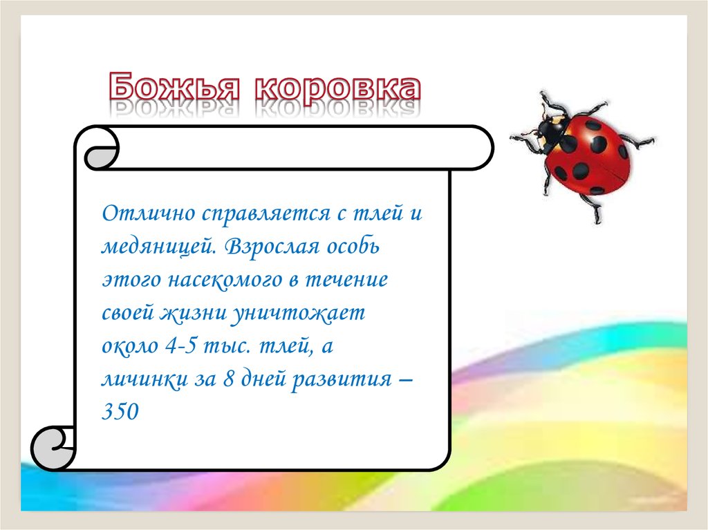 Отлично справляется с тлей имедяницей. Взрослая особь