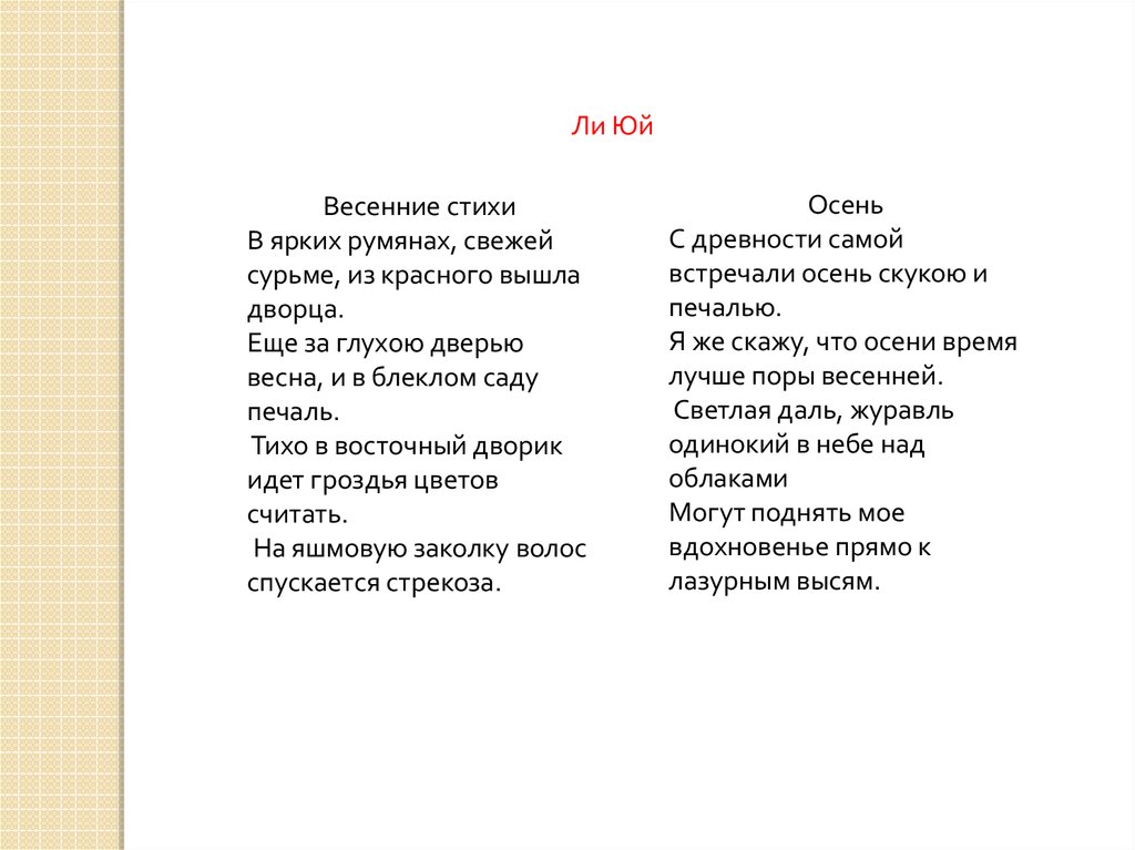 Ли ЮйВесенние стихи