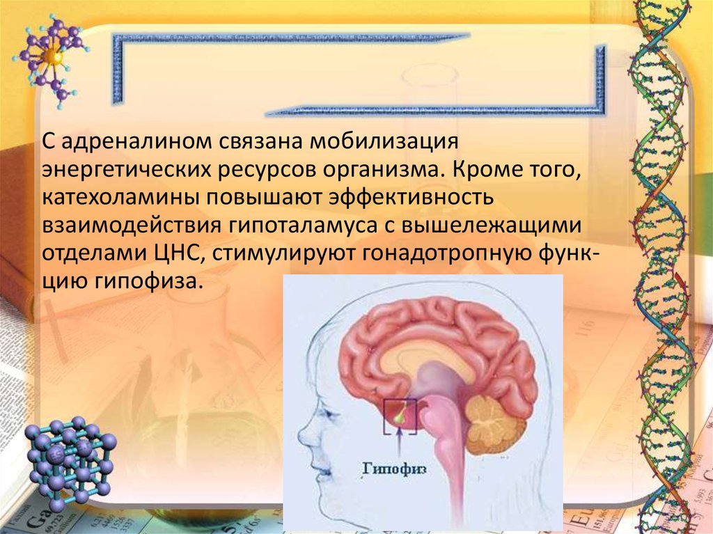 С адреналином связана мобилизацияэнергетических ресурсов организма. Кроме того,