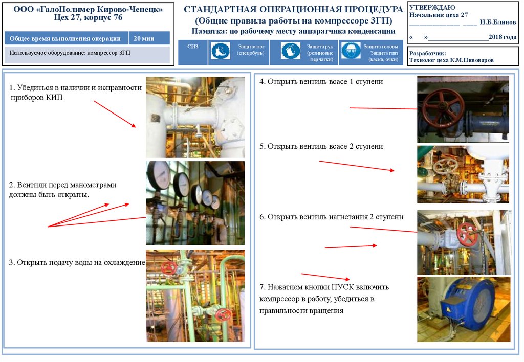 Памятка: по рабочему месту аппаратчика конденсации (Общие правила работы на компрессоре 3ГП)