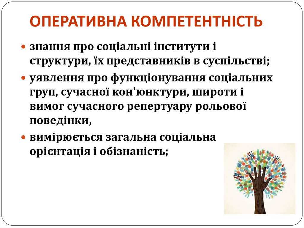 ОПЕРАТИВНА КОМПЕТЕНТНІСТЬзнання про соціальні інститути і