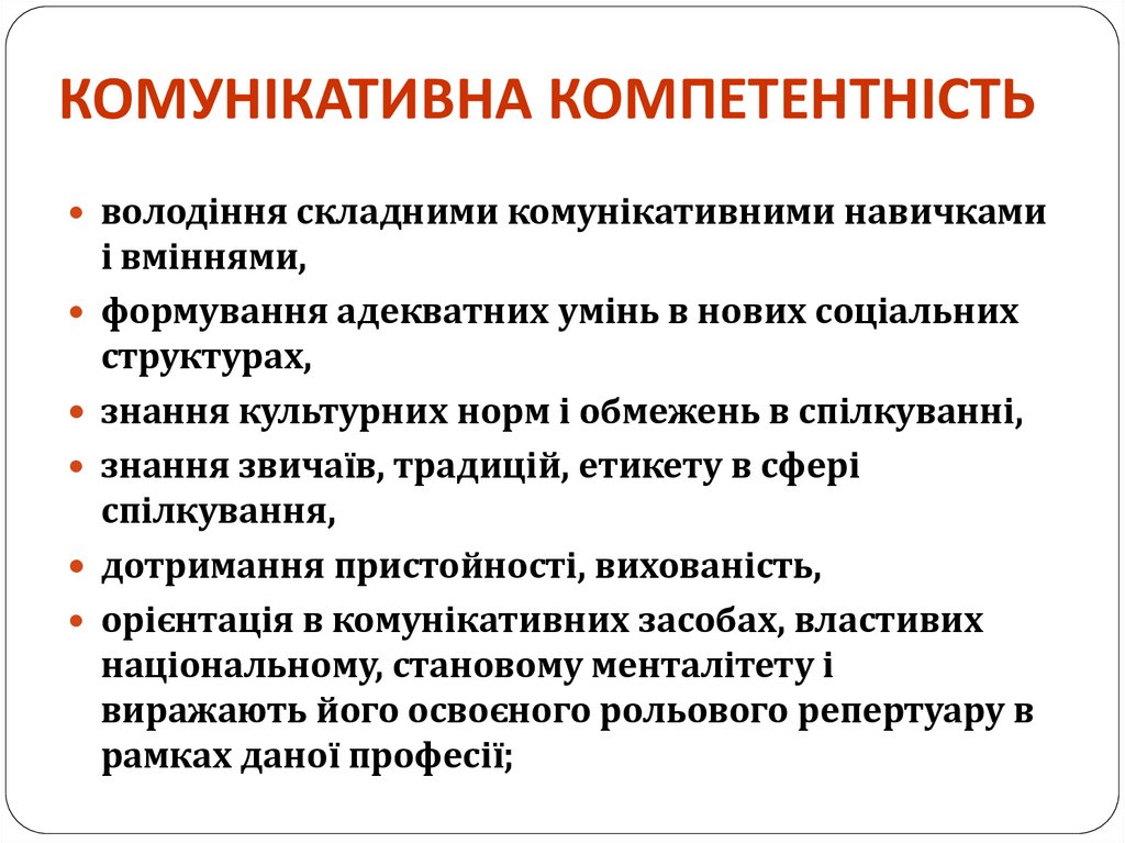 КОМУНІКАТИВНА КОМПЕТЕНТНІСТЬволодіння складними комунікативними навичками