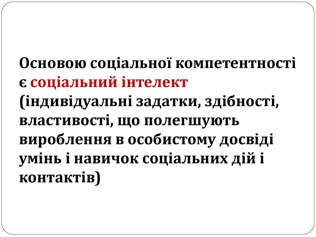 Основа соціальної компетентності Соціальний інтелект –це індивідуальні задатки,