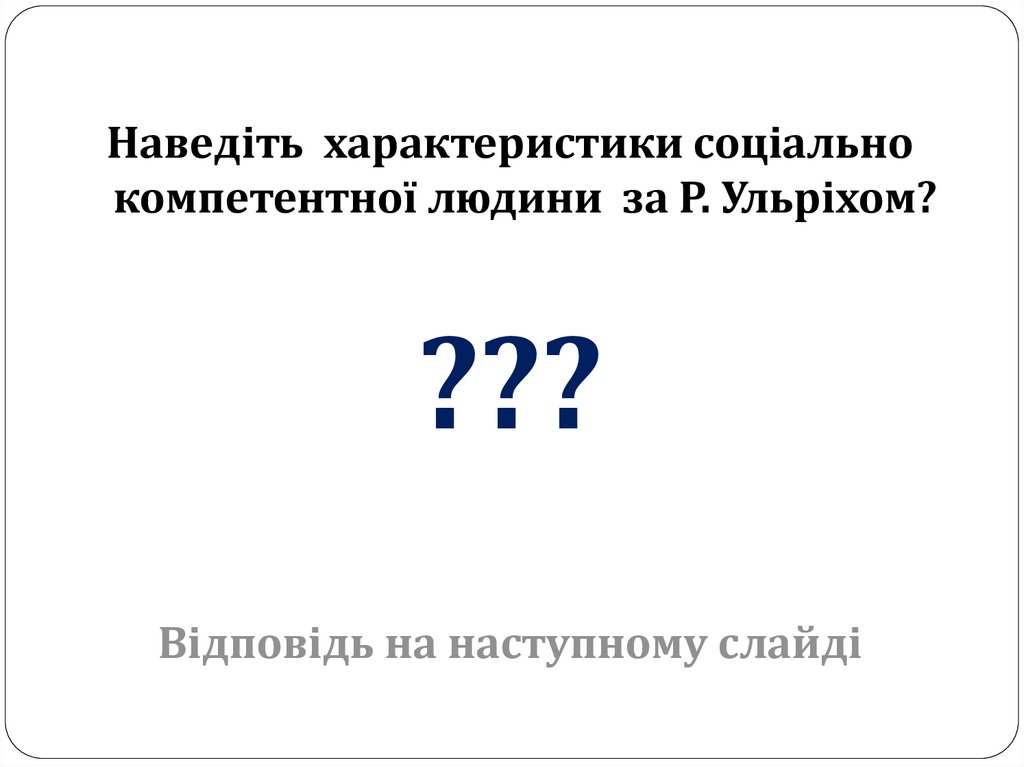 СІМ ХАРАКТЕРИСТИК СОЦІАЛЬНО КОМПЕТЕНТНОЇЛЮДИНИ за Р. Ульріхом