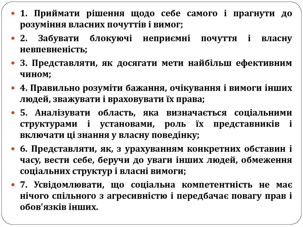 7. Усвідомлювати, що соціальна компетентність не має