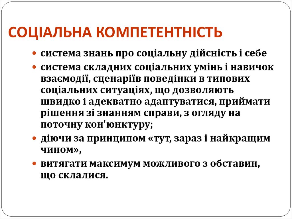 СОЦІАЛЬНА КОМПЕТЕНТНІСТЬсистема знань про соціальну дійсність і себе