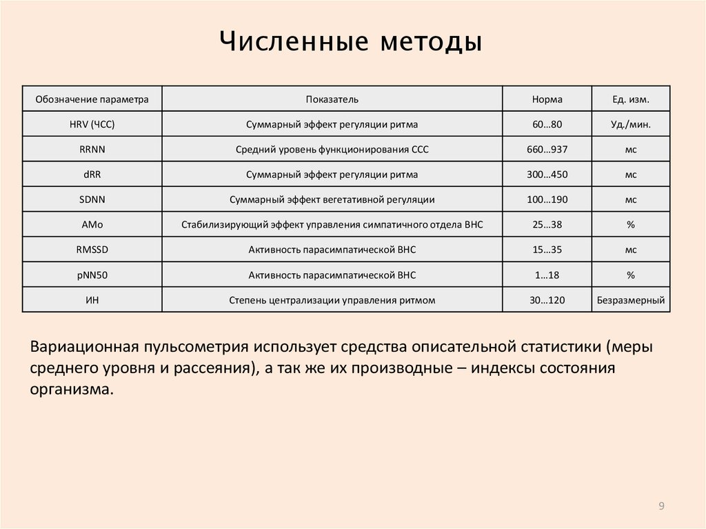 Вариационная пульсометрия использует средства описательной статистики (меры