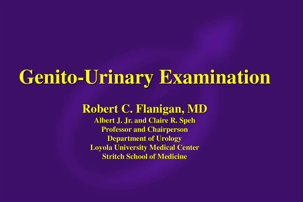 1. Genito-Urinary Examination Robert C. Flanigan, MD Albert J. Jr. and Claire R. Speh Professor and Chairperson Department of