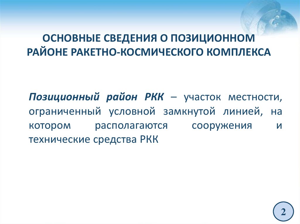 ОСНОВНЫЕ СВЕДЕНИЯ О ПОЗИЦИОННОМРАЙОНЕ РАКЕТНО-КОСМИЧЕСКОГО КОМПЛЕКСА