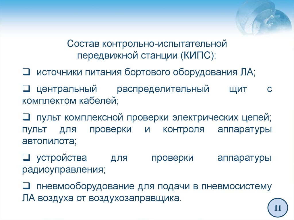 Состав контрольно-испытательнойпередвижной станции (КИПС):