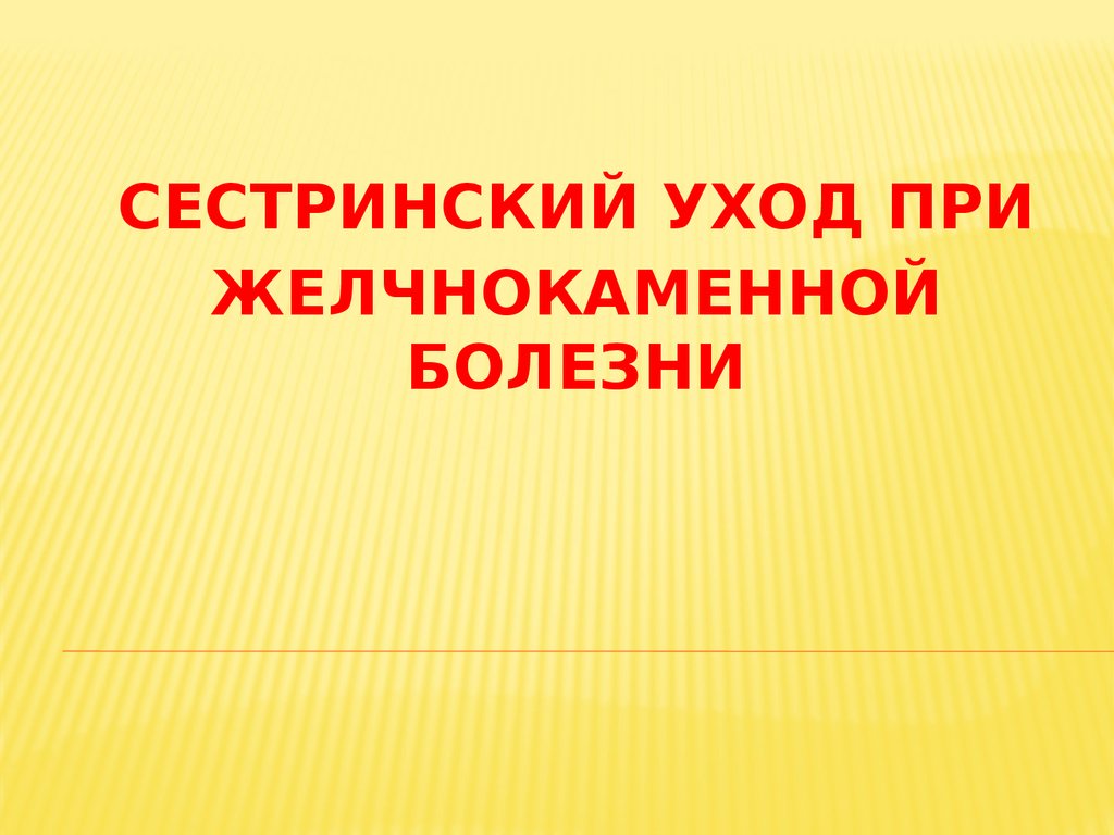 СЕСТРИНСКИЙ УХОД ПРИЖЕЛЧНОКАМЕННОЙ