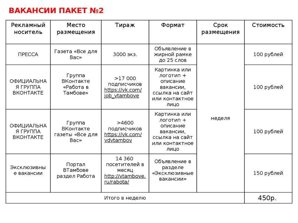 ВАКАНСИИ ПАКЕТ №2Рекламный